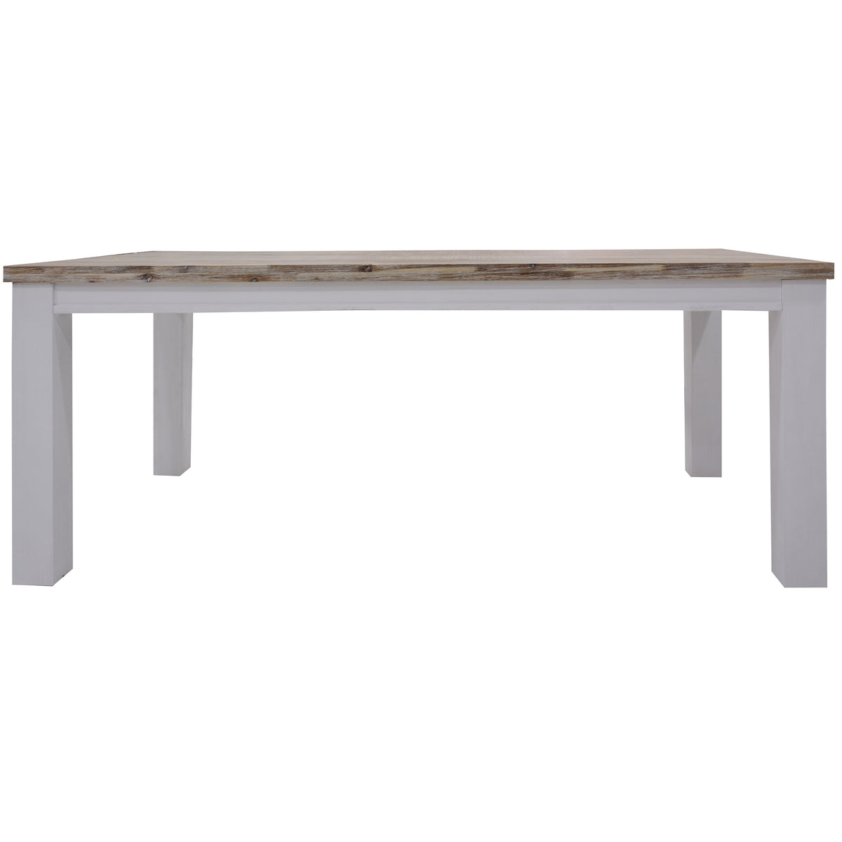 Capture the relaxed, sun-bleached charm of the coast with this beautiful 8-seater dining table. Crafted from sustainably harvested solid acacia timber, its unique tabletop showcases a stunning array of natural tones and hues, finished with a blend of brushed, rough-sawn, and sandblasted textures for exceptional depth and character. This multi-coloured top is elegantly contrasted by a bright, vivid white frame and strong, thick legs, creating a vibrant yet calming centrepiece.